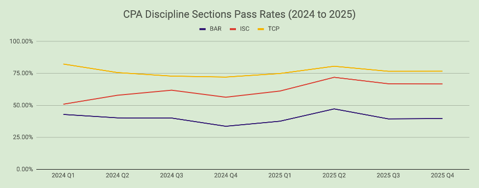 More CPA candidates passed TCP and ISC than BAR in 2025. Still, though, you shouldn’t use pass rates alone to decide which CPA Discipline section to take.