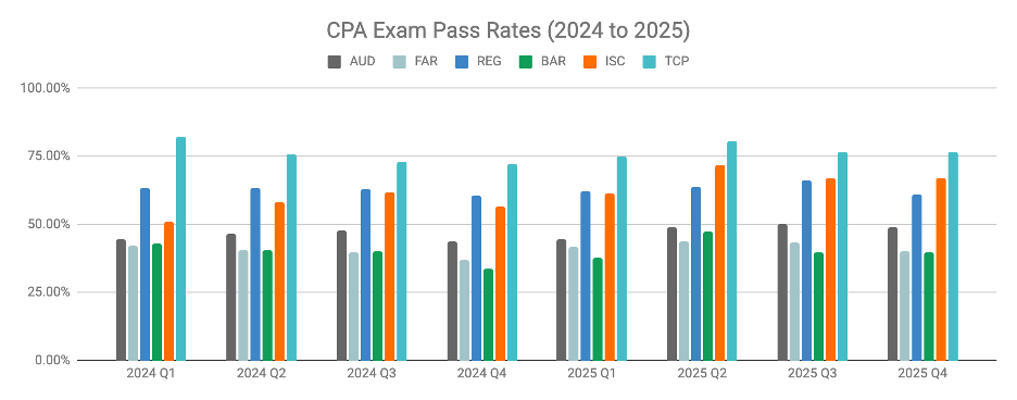 The pass rates for the 2026 CPA Exam aren’t available yet. So for now, this post covers the 2025 pass rates.