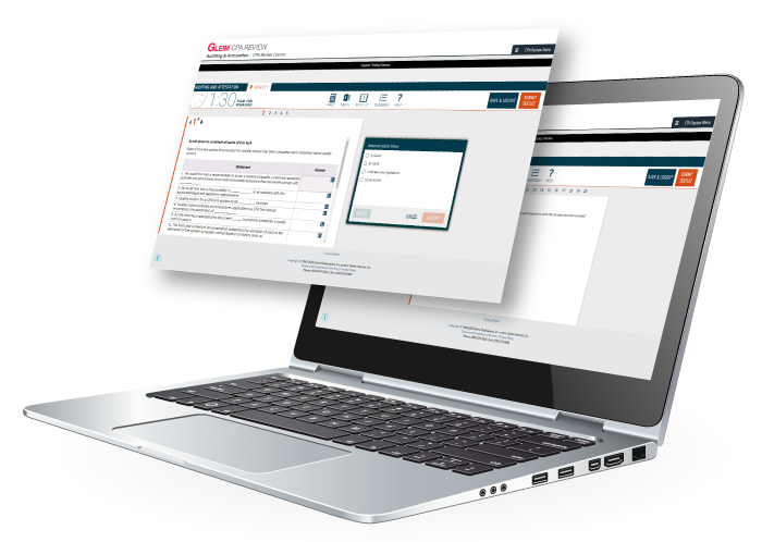 Gleim CPA QuestionsAs you start each study unit, your Gleim course will ask you to answer some diagnostic questions. Then, SmartAdapt assesses your performance and directs you to the right study materials. Next, the course will build a personalized series of multiple-choice quizzes. After taking these quizzes, you may be directed to watch videos on certain topics. Or if you’re ready, you may be advanced forward to task-based simulations. And throughout the whole process, the course keeps careful track of your performance and moves you along as you master each topic.
