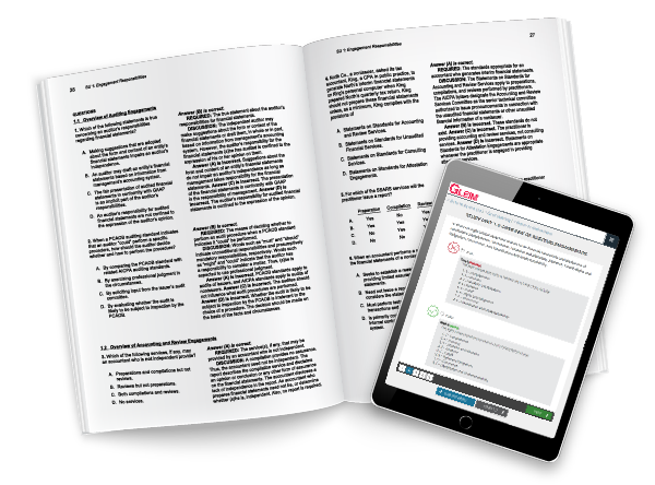 Gleim CPA QuestionsAs you start each study unit, your Gleim course will ask you to answer some diagnostic questions. Then, SmartAdapt assesses your performance and directs you to the right study materials. Next, the course will build a personalized series of multiple-choice quizzes. After taking these quizzes, you may be directed to watch videos on certain topics. Or if you’re ready, you may be advanced forward to task-based simulations. And throughout the whole process, the course keeps careful track of your performance and moves you along as you master each topic.